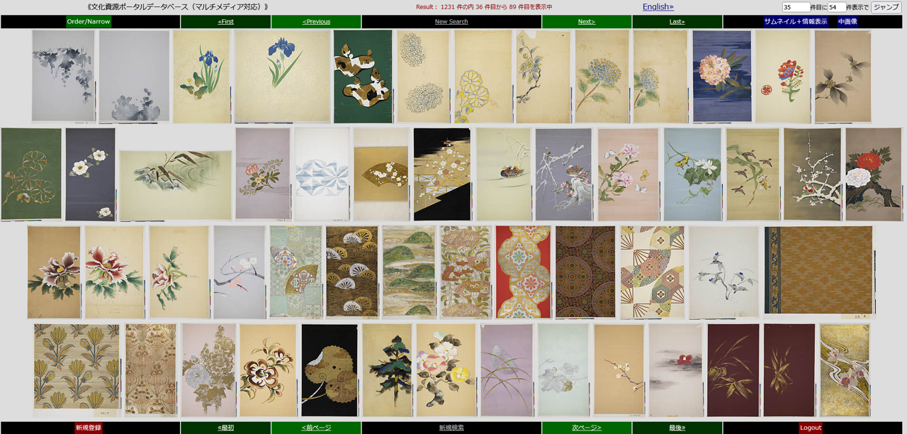 (上)ARCによる「川島織物・帯図案アーカイブ」。2025年11月現在、約1230件がデータとしてアーカイブされている。