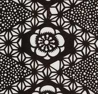 六芒星の形は、「突彫」と呼ばれる刃先を鋭く、薄く整えた彫刻刀を型紙にあて、上下に動かしながら彫刻する技法によるものでしょう。こちらの型紙は型紙が多く彫り抜かれて、紙が細く残る箇所も多いので、非常に細かな作業であったと思われます。地紙を細く残すデザインは、幅が均一でないと完成したときにびつになってしまいます。細い線ですが、幅が均一になるよう、細心の注意を払いながら彫刻されたのではないでしょうか。