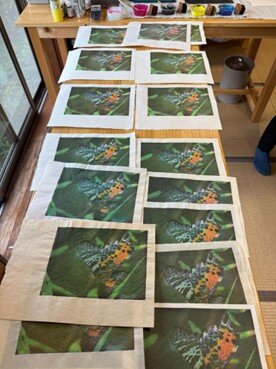 短い時間ながら、講師それぞれの視点と三種類の越前和紙の個性に触れることができ、非常 に充実した学びの機会となった。どの紙にも、摺りの感触や色の出方に独自の特徴があった。紙の良し悪しは単純な優劣で語れるものではなく、制作する作品によって適性が変わる。素材と表現の結びつきを考える貴重な機会となった。今回のワークショップで三つの産地の和紙に触れ、その成り立ちや技術、そして紙を支える人々の思いを改めて知ることで、和紙への理解が単なる知識から実践的な感覚へと変わった。今後の制作においても、紙が持つ個性を生かしながら、自身の表現をさらに深めていきたい。