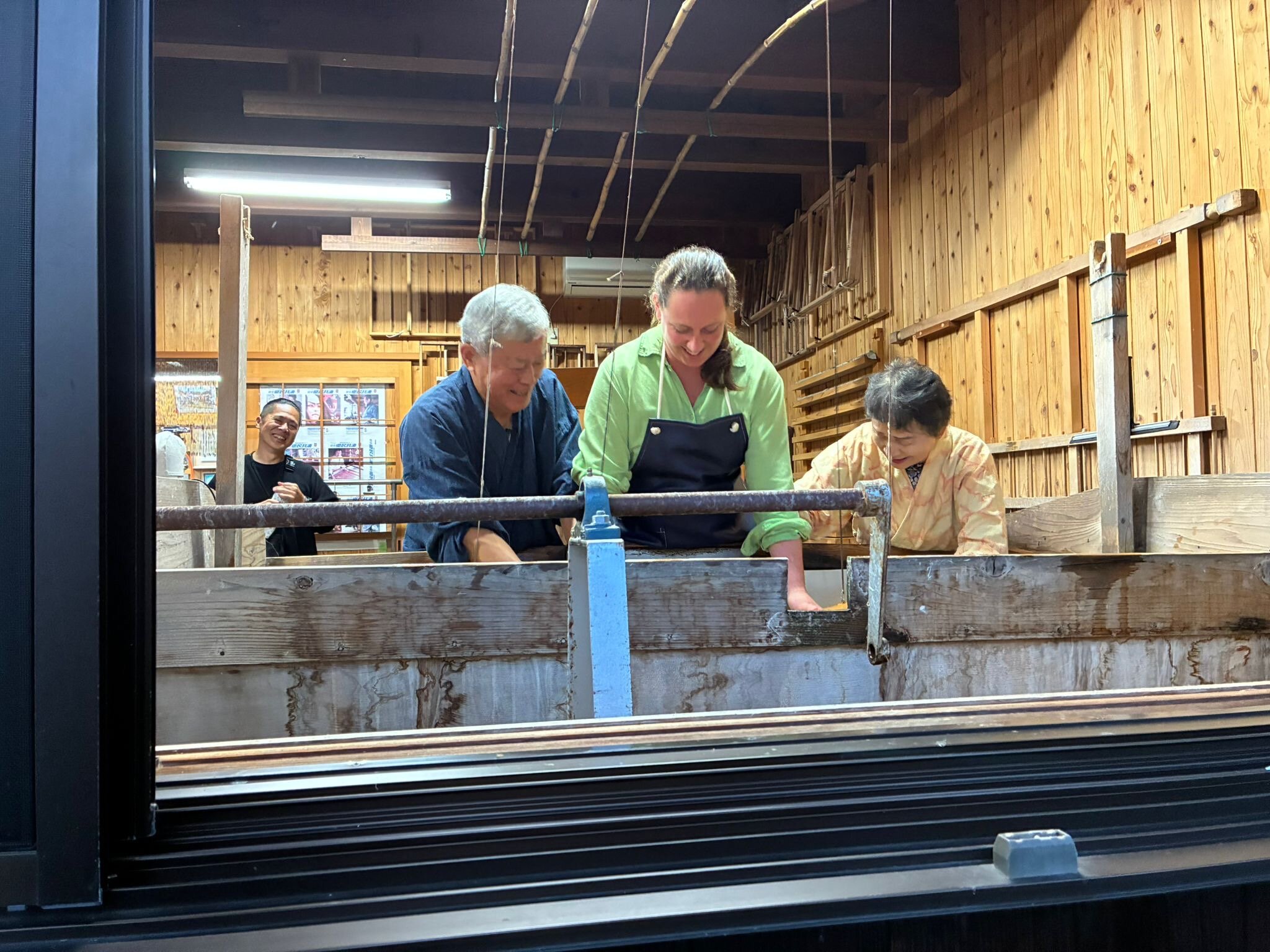 There was something about the way they set it up in Mino. There was a small space in both studios, but we all managed to get in there and quietly observe. And to be taken through the process, all the processes, especially the drying, to see that technique was so valuable. Watching Mr. Suzuki dry the sheets of very fine Mino washi, and then people being given the opportunity to try that, to have the experience of yielding this very fine piece of Washi. That was a real takeaway for me.