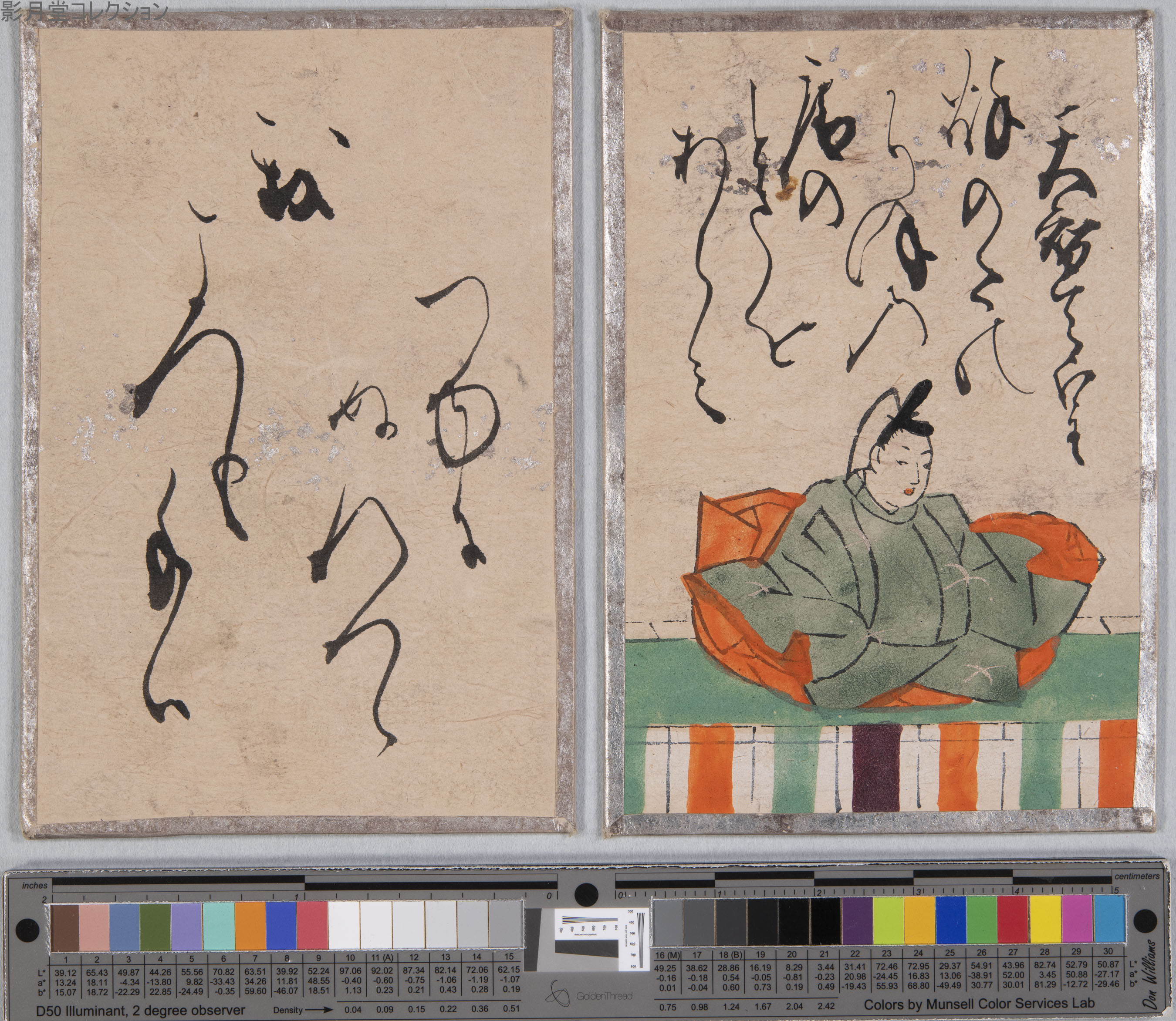 百人一首の悉皆研究をめざしたことで、必然的にかるたの収集も行った。必ずしも研究に直結したわけではないものの、その膨大な享受史に途方に暮れたこともある。肉筆のかるただけならそんな数にはならなかったのだが、版彩色となると一体どれくらい流布したのかもわからなかった。さらに明治期の木版かるたなど、研究者から見放されていたので、やむなく数百個を収集するまでに至った。ただし必ずしも揃っているわけではない。むしろ札の足りないものの方が多かったので、撮影されなかったかるたも少なくない。